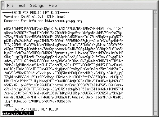 or exported to a keyserver. To see the key, type less